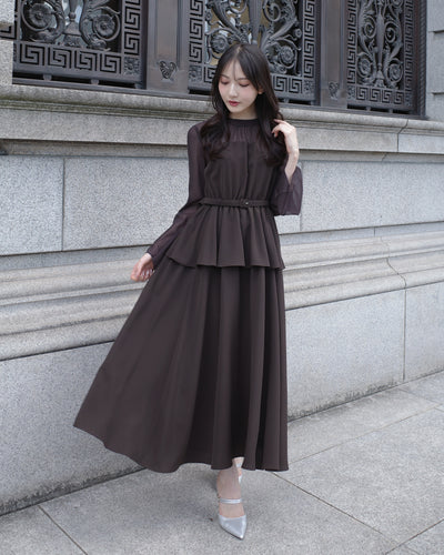【AUTUMN ITEM】ペプラムシフォンボリュームワンピース