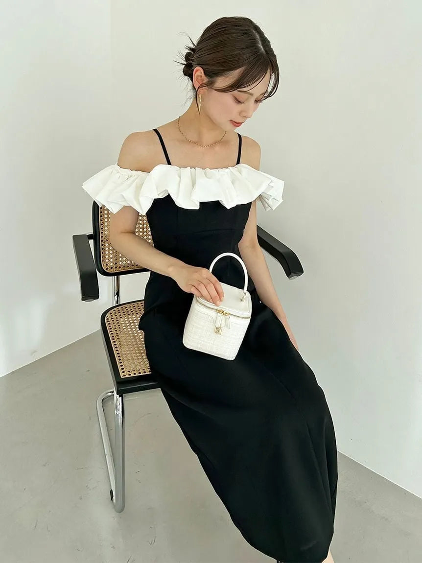 パーティなどの特別な日には、バイカラーワンピースの華やかさを存分に活かした着こなしがおすすめです。コントラストの効いた配色は写真映えもよく、会場でもひときわ目を引く存在になること間違いなしです。胸元にフリルをあしらった、モノトーンのバイカラーワンピースなら、クラシカルで洗練された印象を与えてくれます。