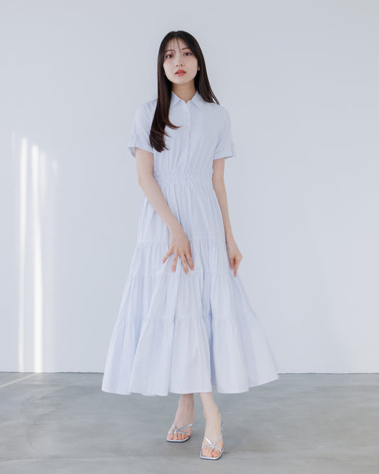 【LINE先行15%OFF】フレアシャツティアードストライプワンピース