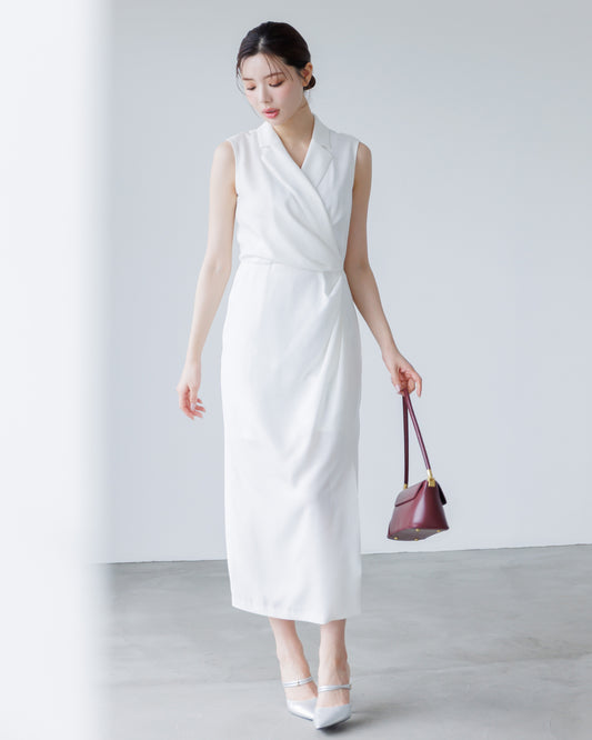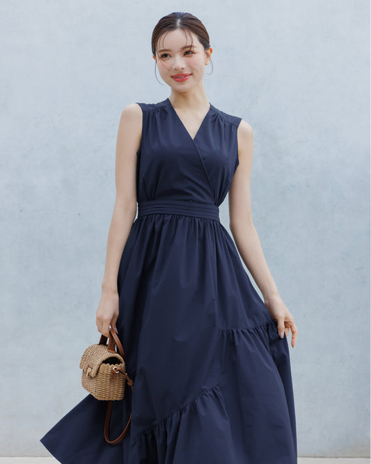 【LINE先行15%OFF】ノースリーブカシュクールドレープワンピース
