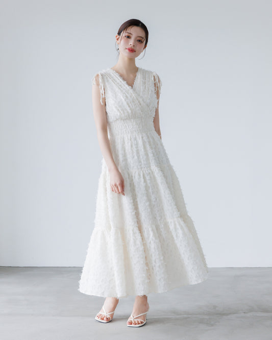 【LINE先行15%OFF】ノースリーブフリンジジャガードワンピース