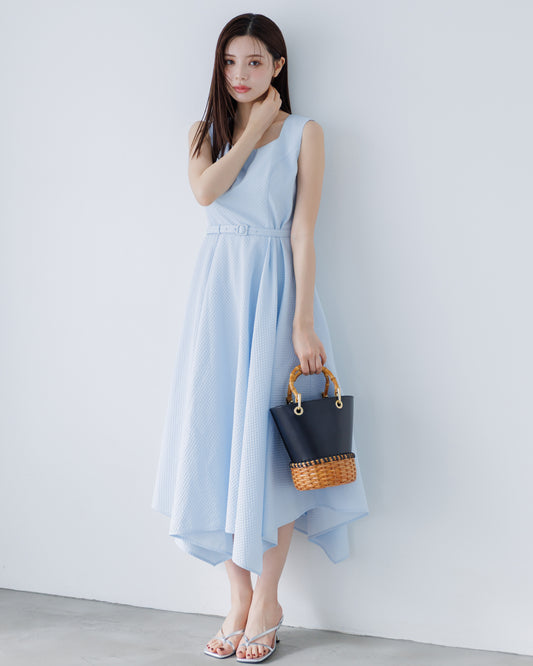 【LINE先行15%OFF】ノースリーブジャガードアシンメトリーワンピース