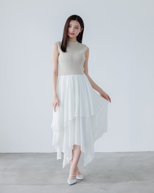 【LINE先行15%OFF】ドッキングニットシフォンギャザーワンピース
