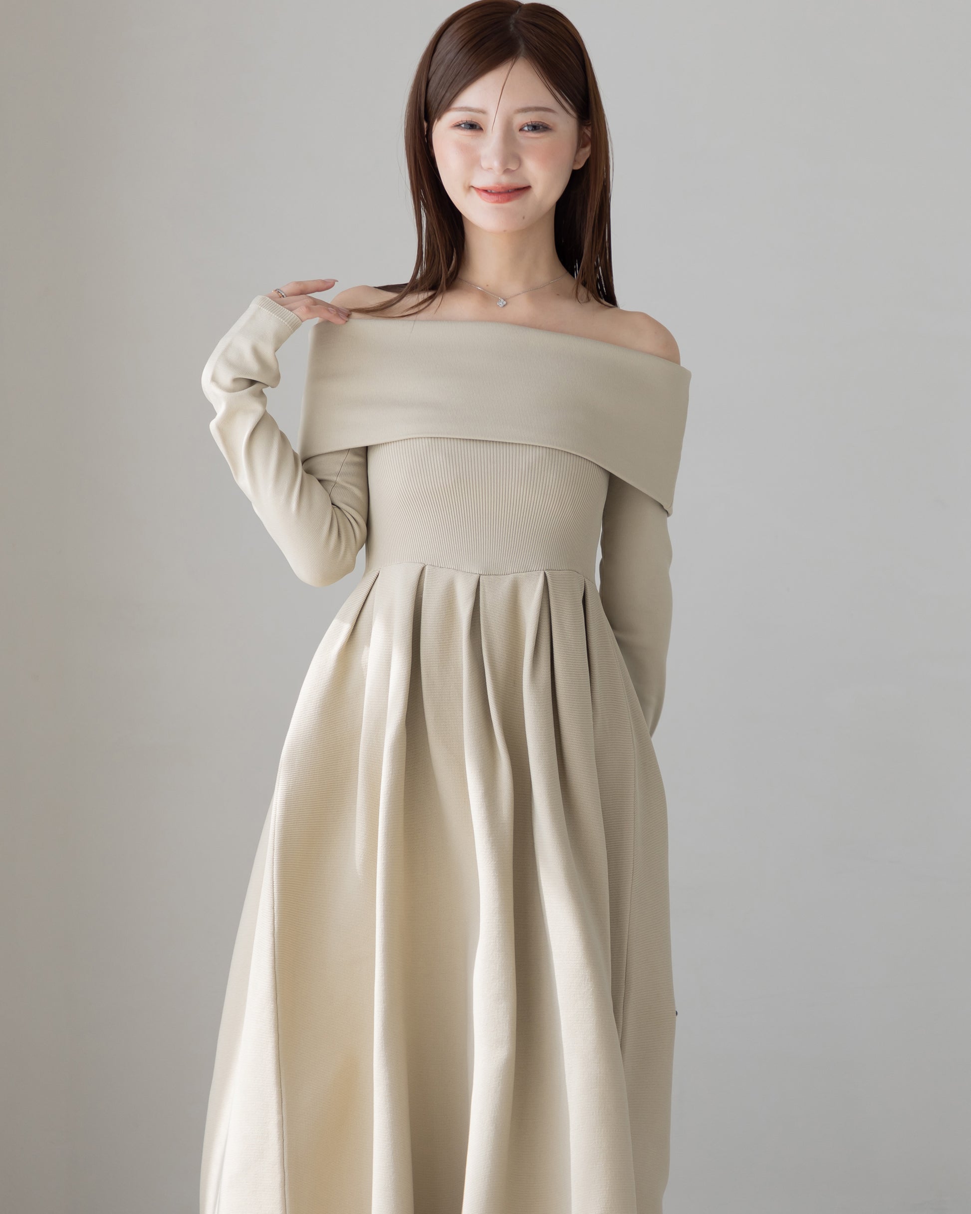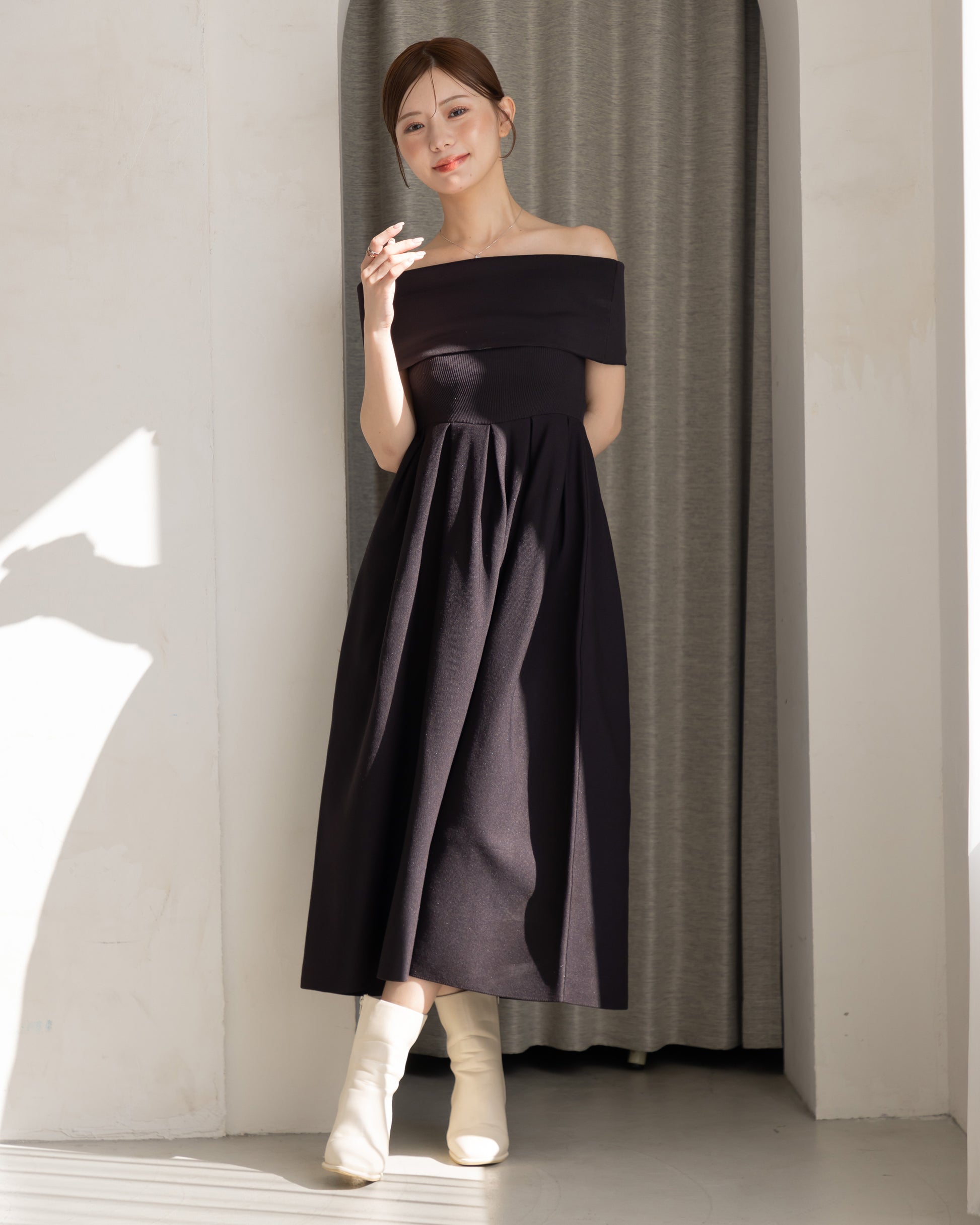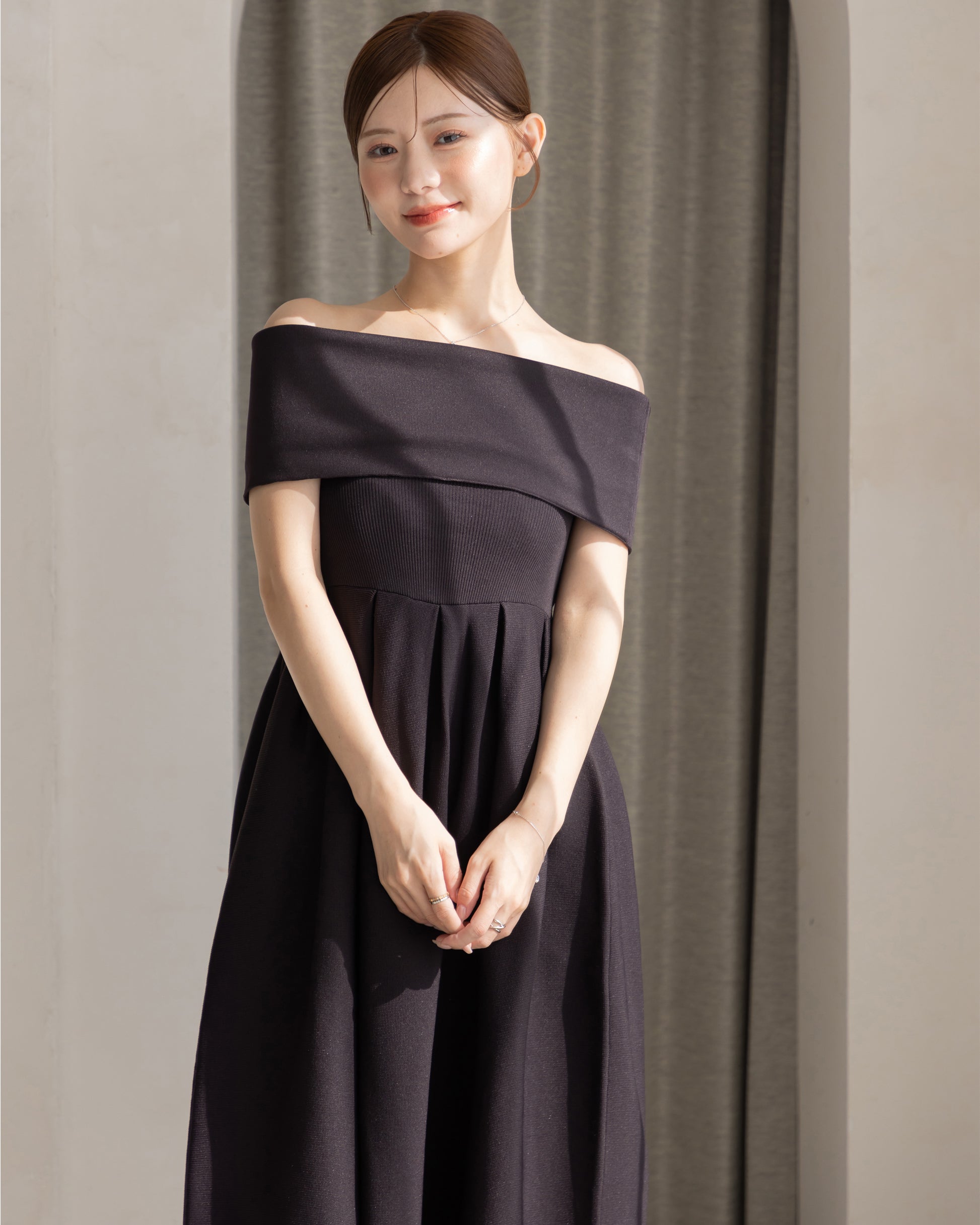 4way仕様のエレガントなオフショルダーニットワンピース。