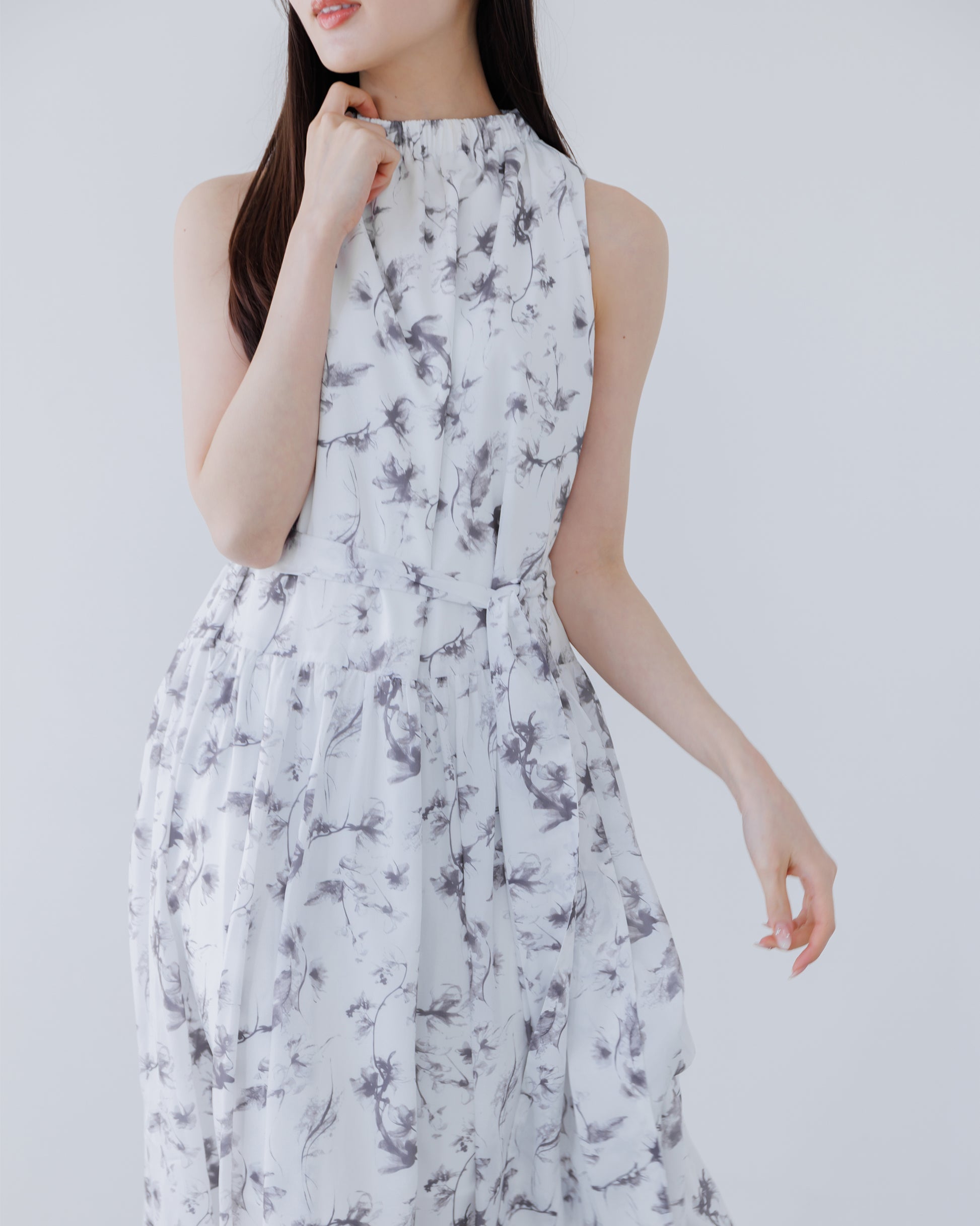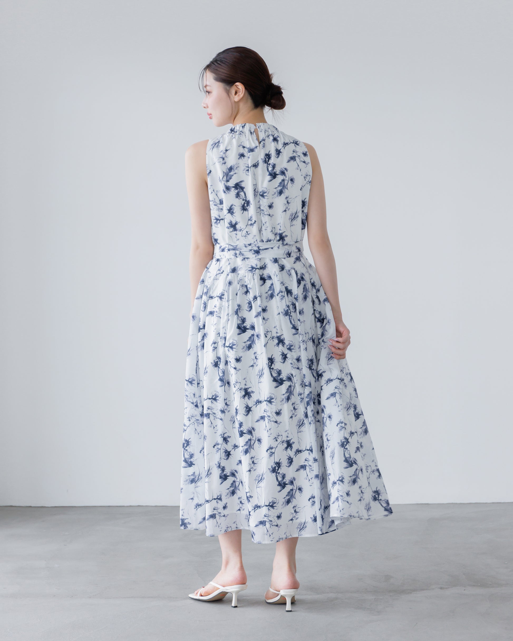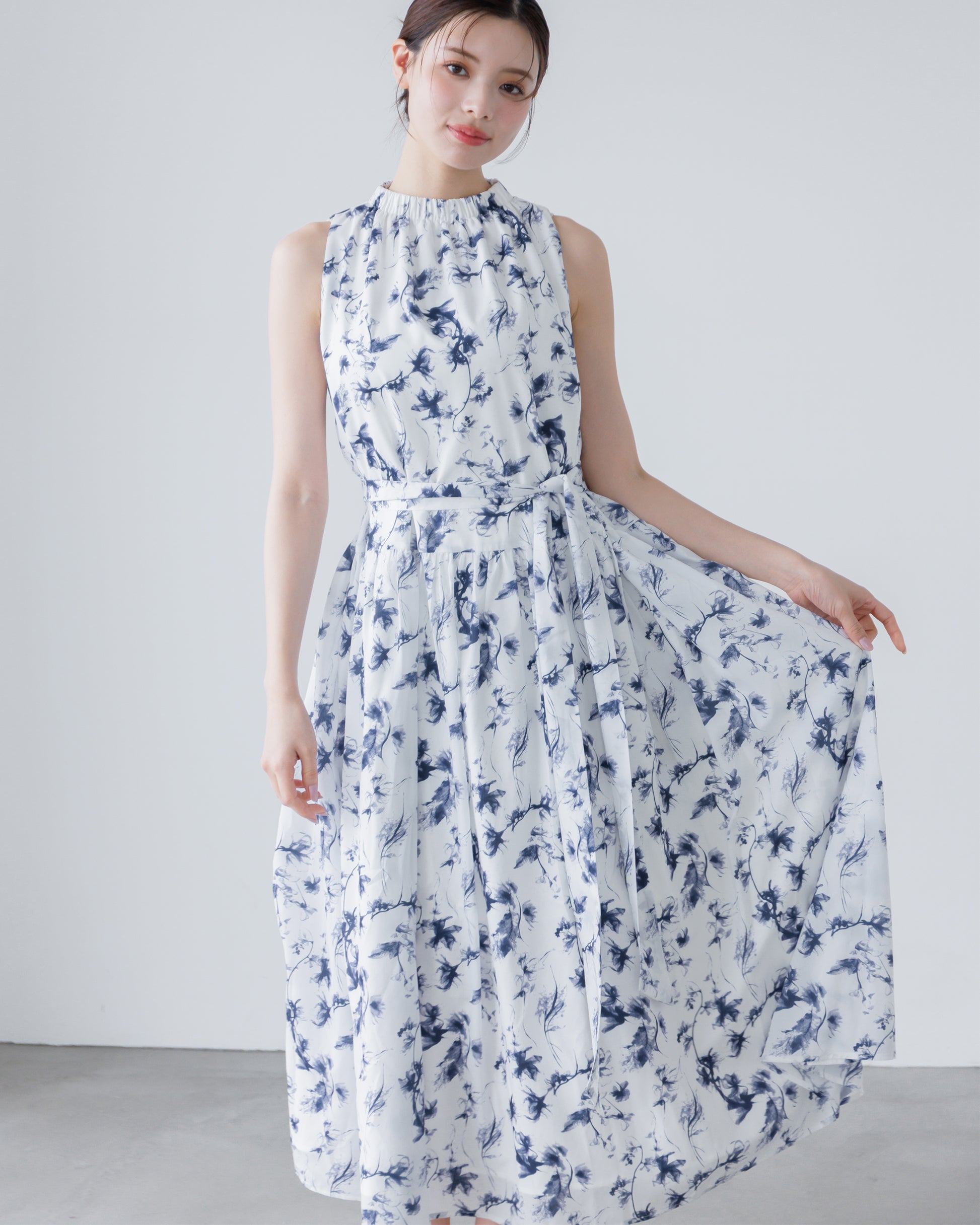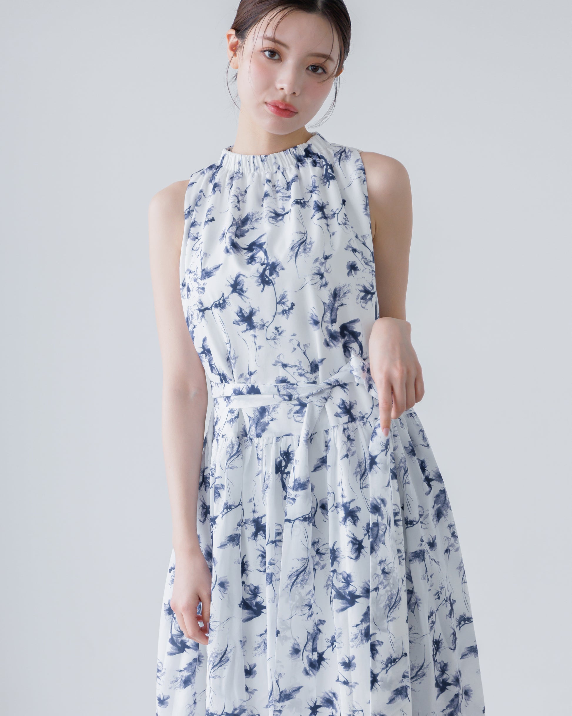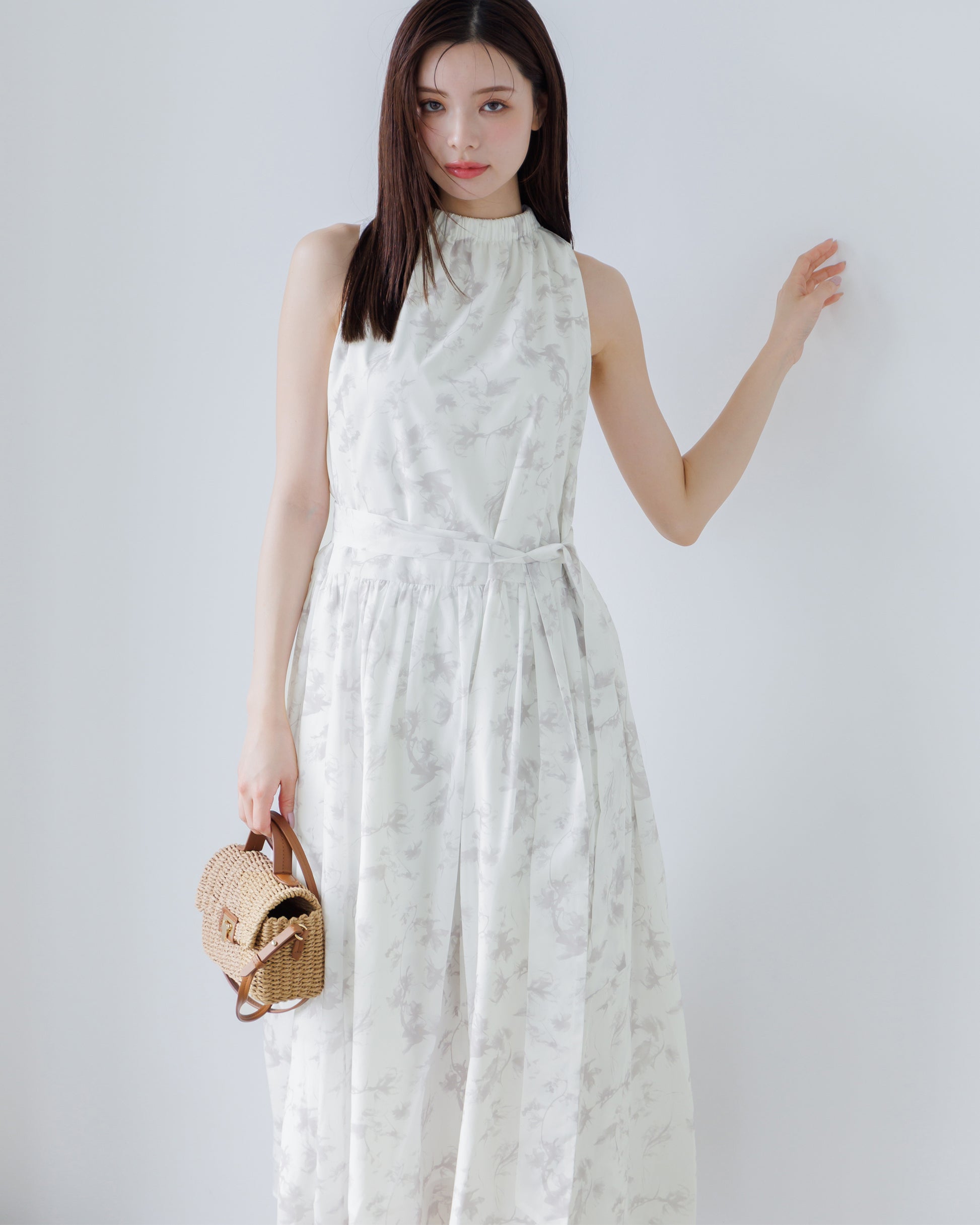 【予約販売】ホルターネックギャザーフラワーワンピース